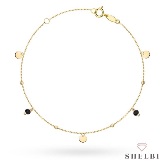 Bransoletka złota diamentowane kulki, pełne kółka i czarne kamienie