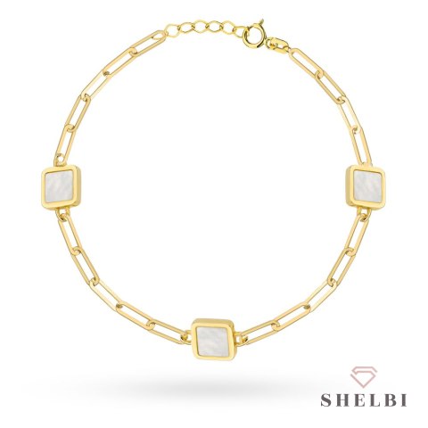 Bransoletka złota długie ogniwa i kwadraty z masą perłową 585 SHELBI