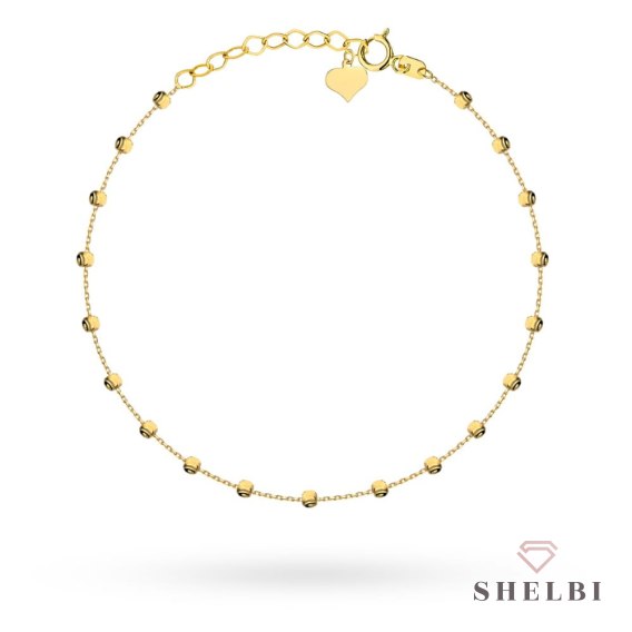 Bransoletka złota z diamentowanymi kuleczkami i serce 585 SHELBI