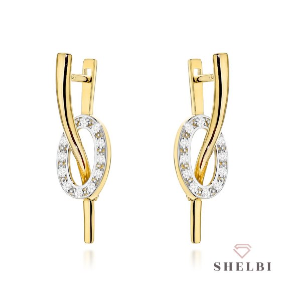 Kolczyki złote fala i owal z cyrkoniami 585 SHELBI