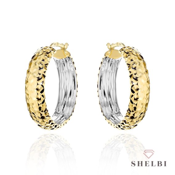Kolczyki złote koła diamentowane z szeroką szyną w dwóch kolorach złota 585 SHELBI