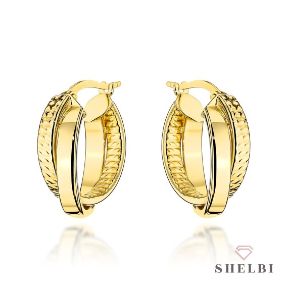 Kolczyki złote podwójne kółka gładkie i diamentowane