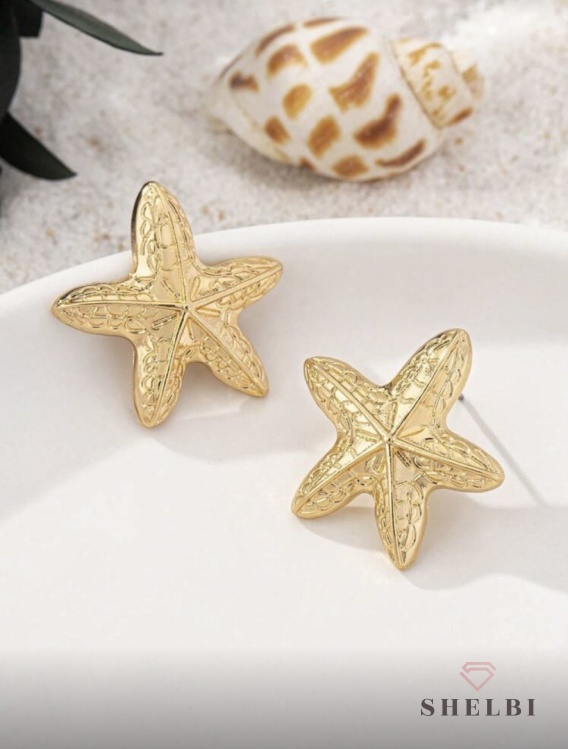 Kolczyki ze stali chirurgicznej 316l złote rozgwiazdy. Piękne kolczyki szczotkowane w kształcie rozgwiazdy do hit. Modny dodatek od wielu lat.