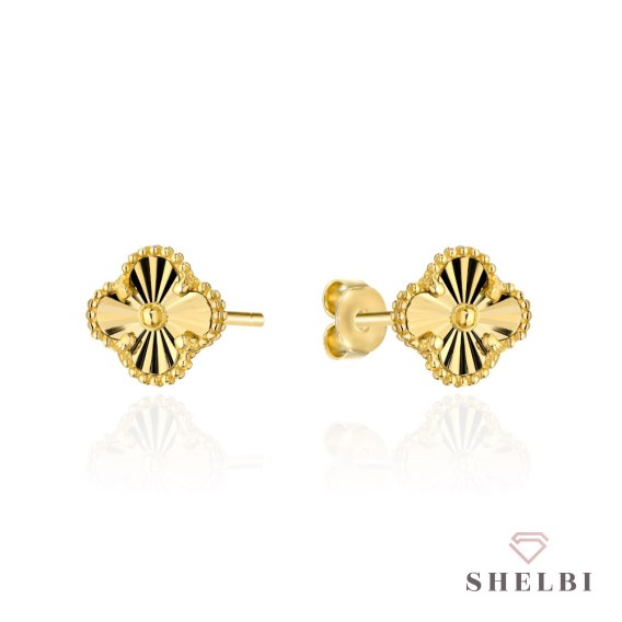 Kolczyki złote z diamentowaną koniczynką 6 mm