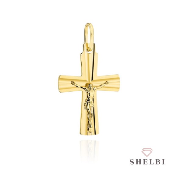 Krzyżyk złoty zdobiony diamentowaniem z Jezusem 585 SHELBI