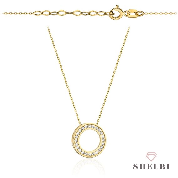Naszyjnik złoty ring oprawiony cyrkoniami 585 SHELBI