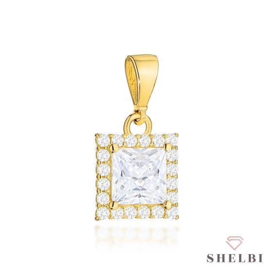 Zawieszka złota z kwadratowym kamieniem i cyrkoniami 585 SHELBI